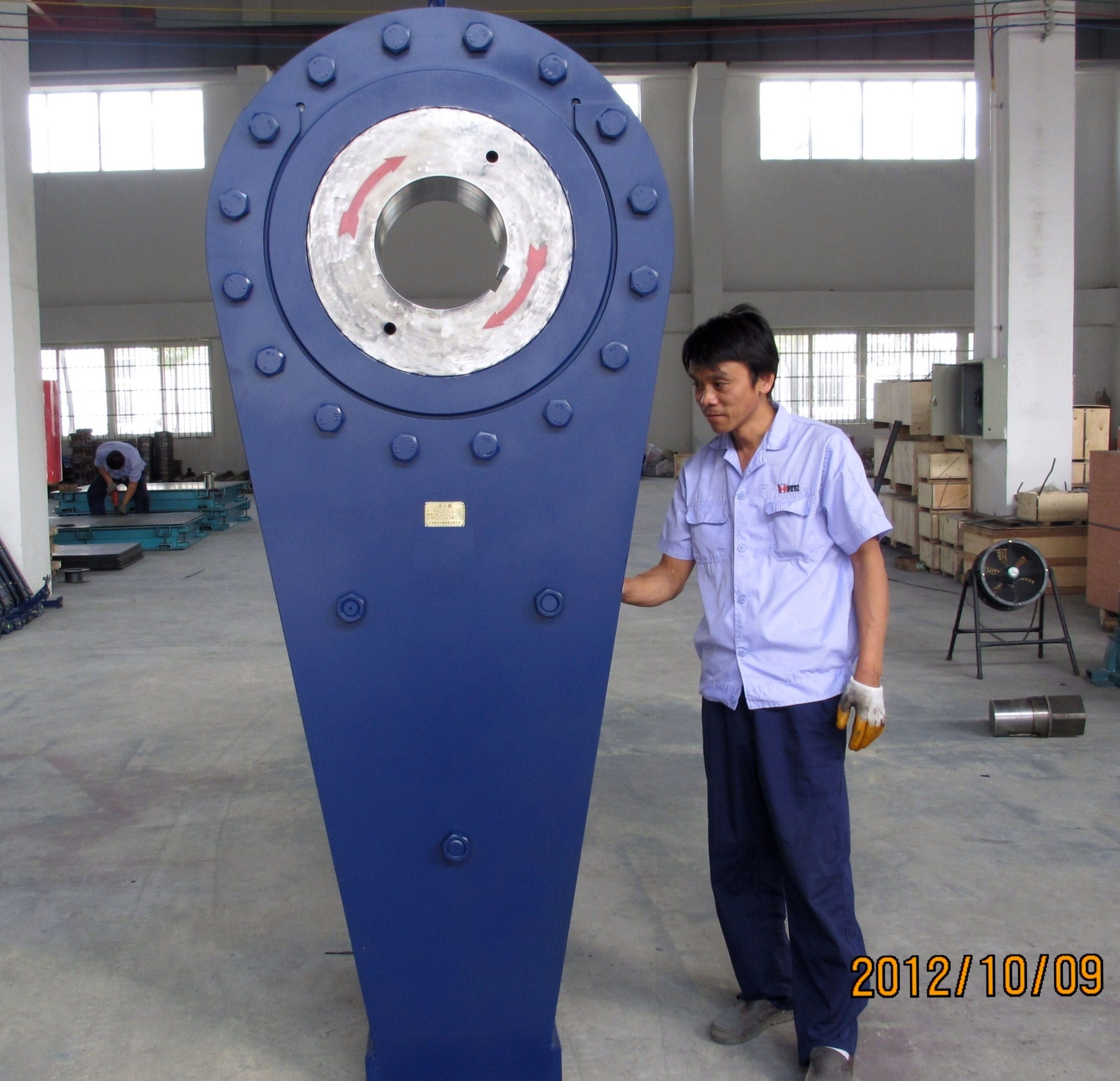2012-10-9,我公司为某矿山企业提供的6台超大逆止器制造完成,该逆之器高度为2.5米,重量达3吨。用户来我工厂验收合格,即日发往现场。